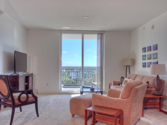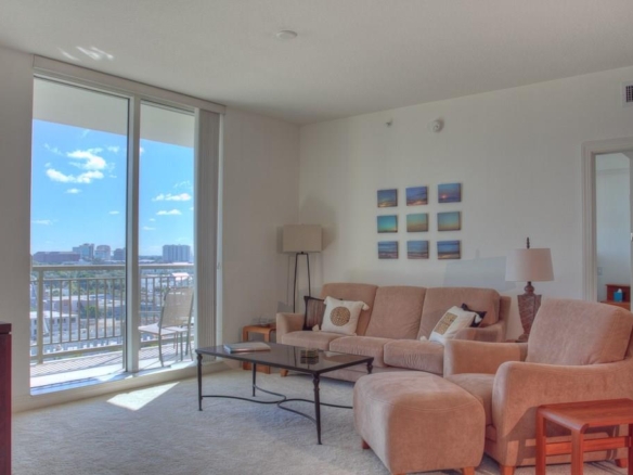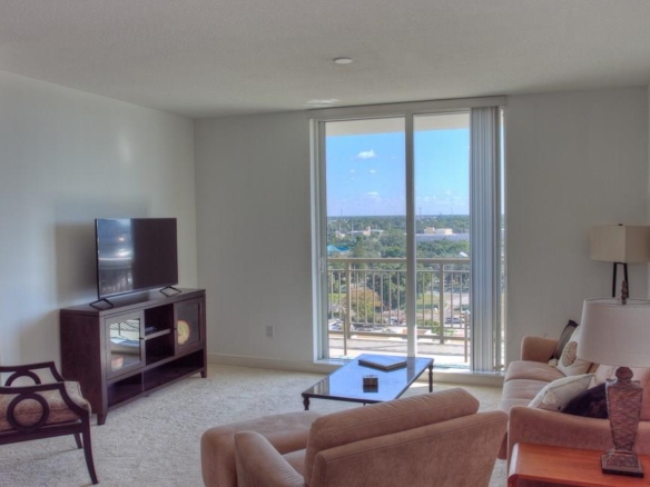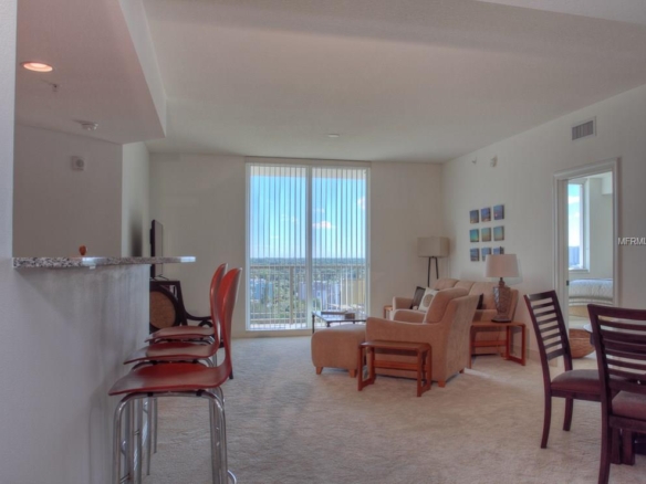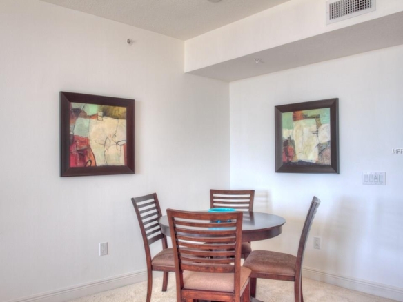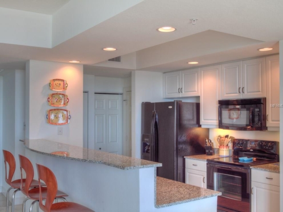 DOWNTOWN ALINARI TURNKEY FURNISHED. RESORT style living at the ALANARI. Newly Furnished and freshly painted and new carpet. Sunny open floor plan with large master suite with a king size bed and 40" Flat screen TV, large walk in closet and master bathroom with garden tub and walk in shower. Living room/ dining room features a 50" flat screen TV and a private terrace that overlooks the beautiful Community Pool and expansive cityscape vistas. Perfect kitchen with breakfast hi-bar, granite counter tops. Bedroom two features a queen size bed. Spacious laundry room. One car garage in secure parking garage and plenty of guest parking. Located on the 10th floor in the south tower within close proximity to the elevator. The Alinari provides every amenity you could need: a 24 hour concierge and security, meeting rooms, library, world class fitness center, heated pool with spa and waterfalls, wine room, media room, in-house movie theater, billiards, zen garden and outdoor grilling area. Walk to downtown and enjoy the restaurants, theater, opera, shopping and more. Walk along the water way and enjoy Sarasota's sunsets. Cross the bridge to St Armands Circle for shopping, restaurants, and the beach. Three month minimum stay. Monthly rate for May through November is $2500.